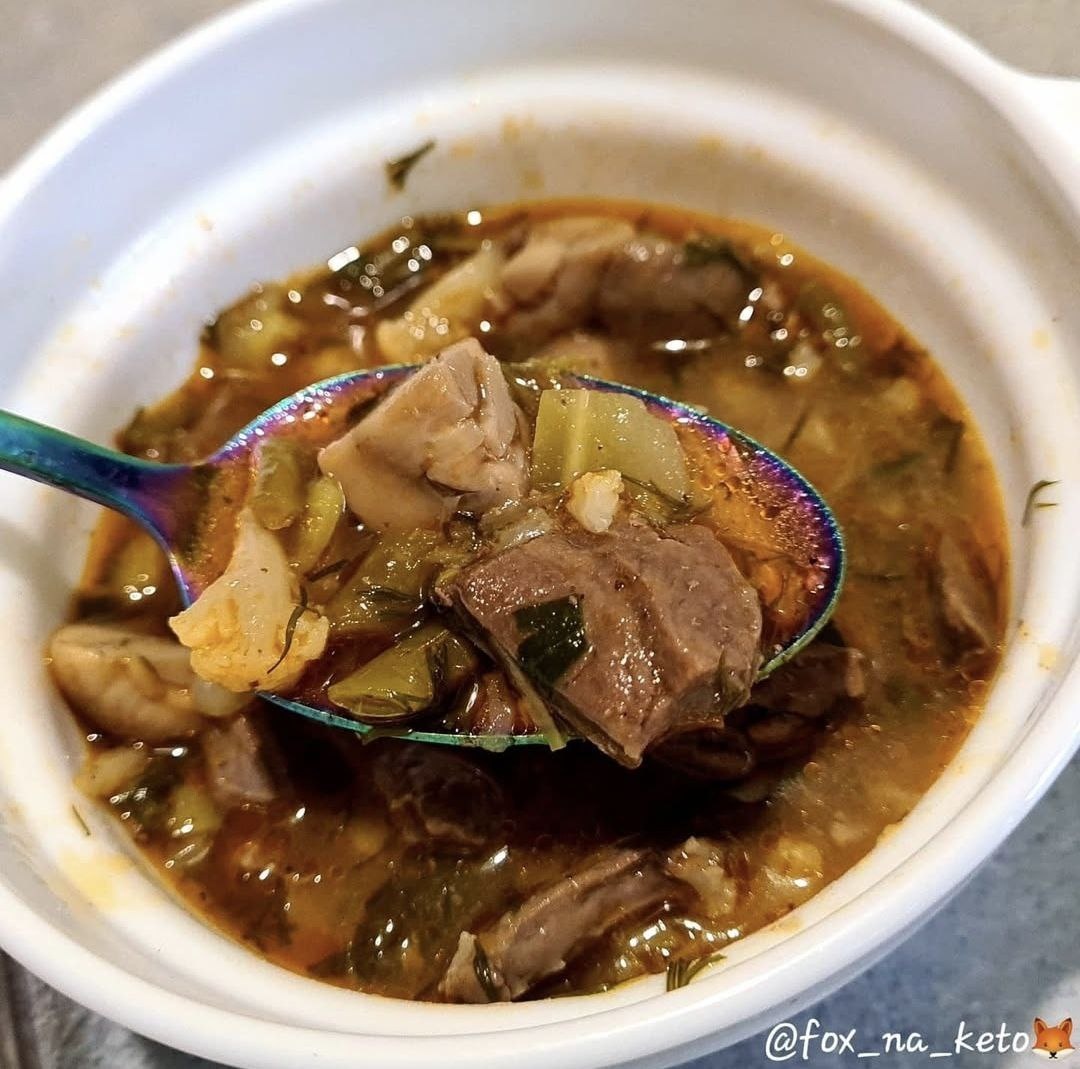 РАГУ ИЗ СЕРДЦА С ОВОЩАМИ Ингредиенты: 📌 500-700 гр свиного сердца 📌 50 гр жира 📌 200 гр шампиньонов 📌 200 гр цветной капусты 📌 200 гр стручковой фасоли 📌 200 гр брокколи 📌 0,5 л костного бульона 📌 1 ст. л. томатной пасты 📌 70-100 гр зелени 📌 соль, перец 📌 специи по вкусу Приготовление: Сердце нарезать небольшими кусочками, в казане или сковороде с высокими бортами (типа вок) растопить жир (лучше брать свиной). Выложить сердце и обжарить на огне выше среднего 10 минут, периодически помешивая. Затем добавить соль, перец, томатную пасту, бульон, перемешать, убавить огонь и тушить 40 минут под крышкой. Затем добавить стручковую фасоль, перемешать, тушить под крышкой еще 10 минут. Добавить грибы (на этом этапе можно еще добавить кабачки), перемешать, тушить под крышкой 15 минут. Затем добавить цветную капусту и брокколи, перемешать и тушить ещё 10 минут. Затем зелень, специи, например, хмели сунели. Перемешать, выключить и оставить на пару минут под крышкой настояться. ПРИЯТНО