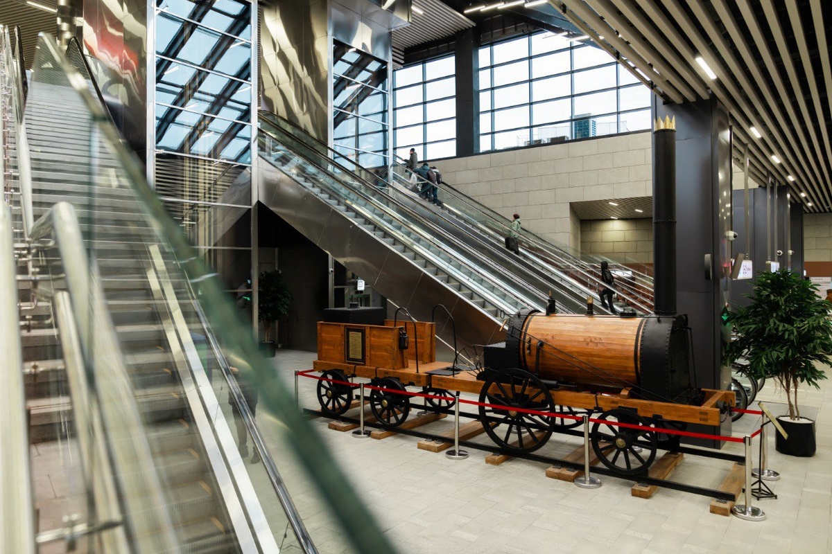 Точная деревянная копия легендарного творения отца и сына Черепановых заняла почётное место в новом павильоне на станции МЦД-4 «Железнодорожная». Этот макет повторяет самоходный механизм, сконструированный талантливыми крепостными мастерами Ефимом и Мироном Черепановыми ещё в 1833 году для перевозки руды на уральском Выйском заводе. Инициатива по установке памятника, идеально вписывающегося в тематику города, принадлежит начальнику Московской железной дороги Валерию Танаеву. Реализацией проекта занимались железнодорожники из депо Узловая (Тульская область). Они воссоздали агрегат в натуральную величину, скрупулёзно следуя оригинальным историческим чертежам. Композиция включает в себя паровой котёл цилиндрической формы, два лежачих цилиндра и тендер — специальную тележку для запасов воды и топлива. Общая высота конструкции вместе с дымовой трубой достигает 4,8 метра, а длина самого паровоза — 4,2 метра. Для долговечности макет был собран из лиственницы, обработанной устойчивым яхтным ла