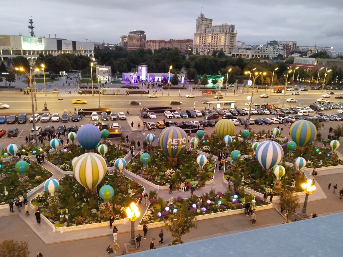На колоннаде Парка Горького , есть смотровая площадка. При входе в колоннаду, слева увидите двери, красивые🤗 Входите смело... Милая дама объяснит Вам, что и как. Стоимость 300р с человека Действуют льготы. Рядышком современный , стеклянный лифт, который поднимет вас на третий этаж, там небольшая экспозиция по истории парка, а если пройдёте чуть правее лестницы, перед вами будет длинный коридор, который представляет собой небольшой музей, где представлены картины современных художников и скульпторов. На втором и третьем этажах, проходят лекции и экскурсии. С четвертого этажа надо будет подняться ещё чуть выше, но уже по лестнице винтовой. И открыть дверь🤗, да, именно так и попадете на смотровую площадку. Крутой вид на парк Музеон, Храм Христа спасителя , крымский мост и конечно площадь перед парком.. Так же по этой стороне площадки, стоят большие ,,бинокли,, бесплатные☝️😂, можете разглядеть то, что не видно. По стороне парка, есть деревянный помост, который стоит именно по серед