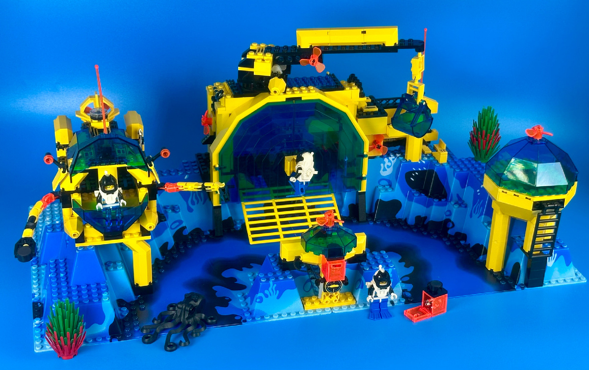 Что же такое Neptune Discovery Lab? Это огромное подводное строение, разместившееся сразу на двух (!) холмистых пластинах 32х32. Огромное оно даже по меркам других подобных стационарных баз из серий Lego