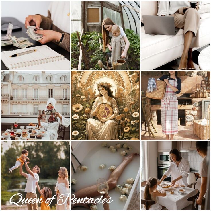 Это воплощение тепла, уюта, стабильности и сдержанности. ✨Щедрая, но умеет радоваться простым радостям. ✨Прирождённая хозяйка и организатор, любит порядок и комфорт. ✨Сильная интуиция в материальных вопросах и финансах. ✨В отношениях ищет стабильность, преданность и гармонию. ✨Любит природу, растения, натуральные материалы, натуральную красоту. ✨Чувствительная, но умеет держать эмоции под контролем. Королева Пентаклей – это та, чья энергия притягивает людей, она вдохновляет и поддерживает!