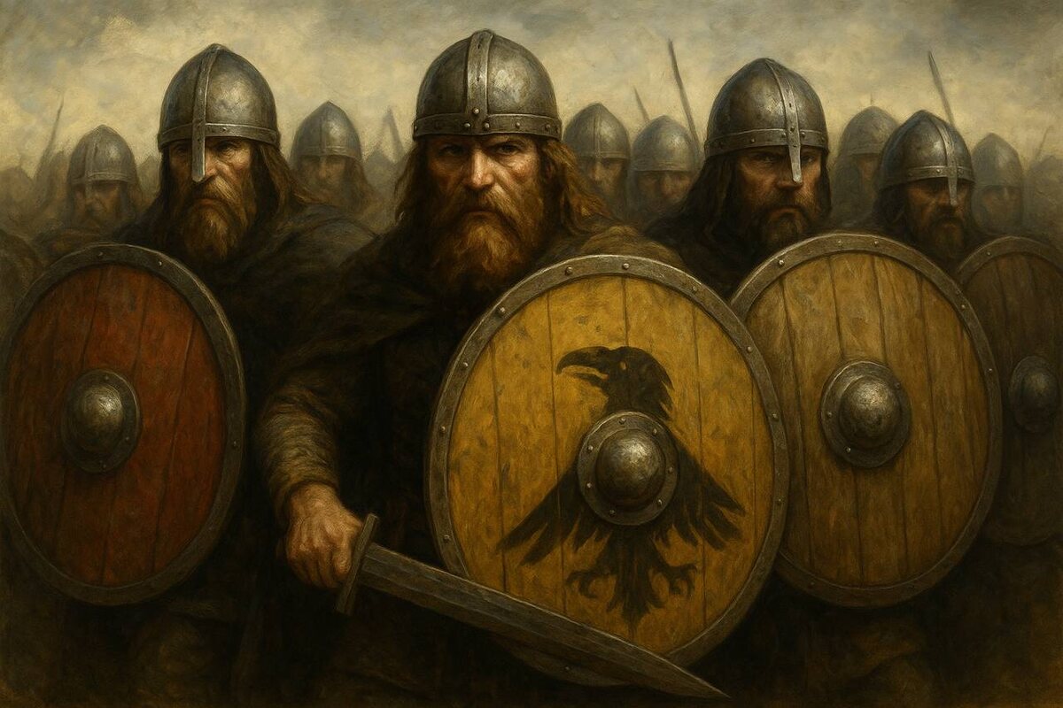 Щит викинга — символ защиты и оружие нападения 🛡️ Щит для викинга был не просто защитой, а продолжением его силы. Круглый, сделанный из дерева и обитый металлом, он закрывал воина почти полностью. Часто его раскрашивали в яркие цвета или наносили символы, чтобы внушать страх врагу и поддерживать боевой дух своих. ⚔️ В сражении щит использовался не только для обороны, но и для атаки. Удар краем щита мог сбить противника с ног, а слаженный «щитовой строй» делал дружину неприступной стеной. 🌌 Щит был также важен в культуре: в сагах упоминается, что умерших воинов хоронили вместе с их щитами. Это означало, что даже в мире духов они должны быть готовы к битве. 🔥 Для викингов щит — это не просто доска с железом. Это символ чести, сплочённости и силы. Он защищал тело, поднимал дух и помогал завоёвывать новые земли.