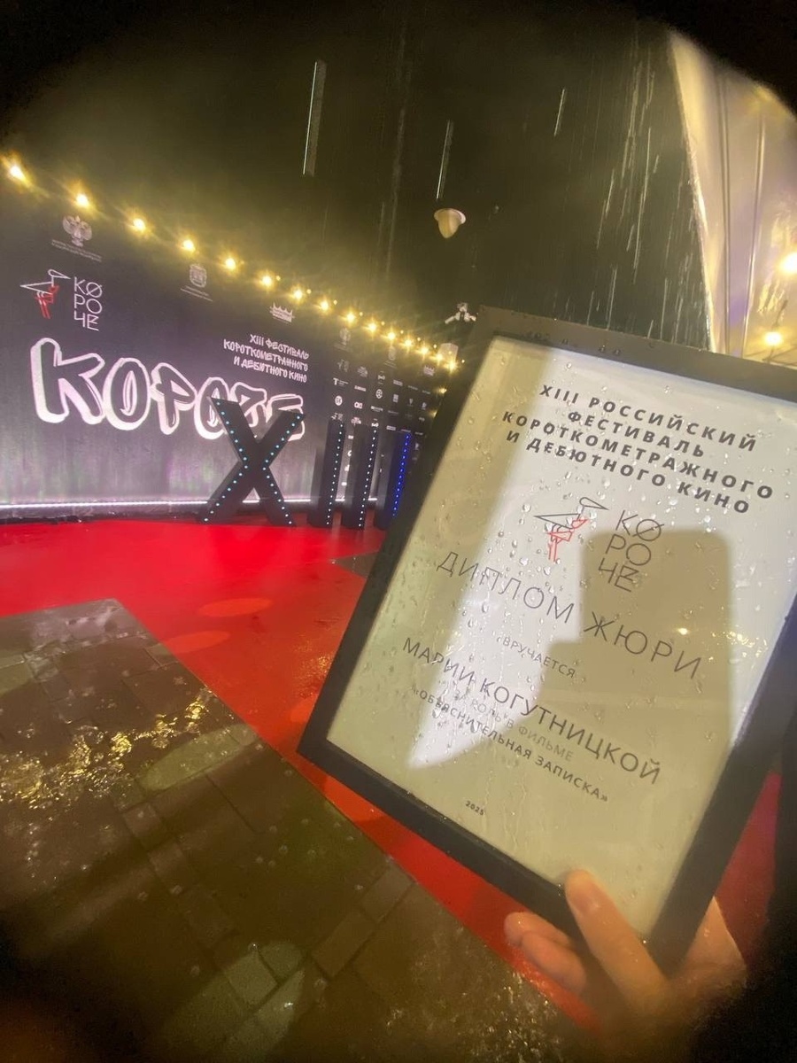 π₯ ΠΡΠΏΡΡΠΊΠ½ΠΈΡΠ° ΠΌΠ°ΡΡΠ΅ΡΡΠΊΠΎΠΉ ΠΠ°ΡΠ³Π°ΡΠΈΡΡ ΠΡΡΠΊΠΎΠ²ΠΎΠΉ ΠΠ°ΡΠΈΡ ΠΠΎΠ³ΡΡΠ½ΠΈΡΠΊΠ°Ρ ΠΏΠΎΠ»ΡΡΠΈΠ»Π° Π½Π°Π³ΡΠ°Π΄Ρ Π·Π° ΠΈΡΠΏΠΎΠ»Π½Π΅Π½ΠΈΠ΅ ΡΠΎΠ»ΠΈ Π² ΠΊΠΎΡΠΎΡΠΊΠΎΠΌΠ΅ΡΡΠ°ΠΆΠ½ΠΎΠΌ ΡΠΈΠ»ΡΠΌΠ΅ Β«ΠΠ±ΡΡΡΠ½ΠΈΡΠ΅Π»ΡΠ½Π°Ρ Π·Π°ΠΏΠΈΡΠΊΠ°Β» ΡΠ΅ΠΆΠΈΡΡΡΡΠ° ΠΠ΅Π½ΠΈΡΠ° ΠΠ³Π°ΡΠΎΠ½ΠΎΠ²Π°. ΠΠ°Π³ΡΠ°Π΄Ρ Π·Π° ΡΠ°Π±ΠΎΡΡ Π΅ΠΉ ΠΏΡΠΈΡΡΠ΄ΠΈΠ»ΠΎ ΠΆΡΡΠΈ Π² ΡΠΎΡΡΠ°Π²Π΅ ΠΠ½ΠΈ Π§ΠΈΠΏΠΎΠ²ΡΠΊΠΎΠΉ, Π ΠΎΠΌΠ°Π½Π° ΠΠ²Π΄ΠΎΠΊΠΈΠΌΠΎΠ²Π°, ΠΠ²Π³Π΅Π½ΠΈΡ Π‘Π°Π½Π³Π°Π΄ΠΆΠΈΠ΅Π²Π° ΠΈ ΠΠΈΡ