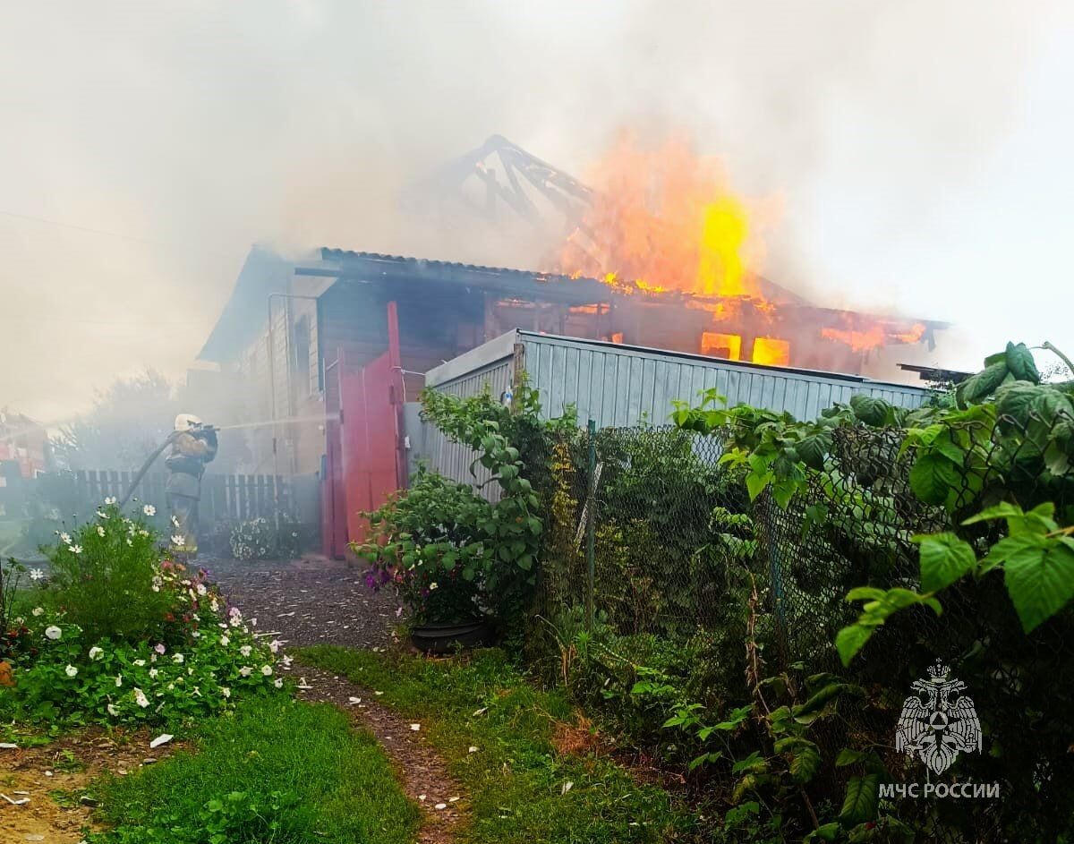 На улице Радищева загорелся дом. Предварительно, в распределительной коробке вспыхнула проводка. Огонь быстро перекинулся на чердак жилого помещения.
