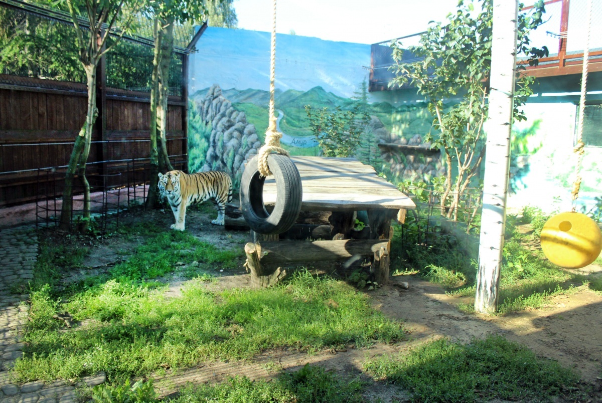 Уссурийскому хищнику теперь доступен просторный отапливаемый павильон, в котором предусмотрено логово для родов будущей самки. Стены павильона украсили пейзажи мест обитания амурского тигра. В части вольера, которая находится на улице, установлены новый деревянный подиум, новые игрушки в виде подвесной шины и шара. Еще новый вольер украсил информационный стенд, где можно узнать о силе амурского хищника.