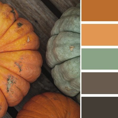 Шалфейно-зеленый и тыквенный оранжевый - Интересная, слегка винтажная палитра приглушенных оттенков, Дополнить такую палитру можно коричневым.