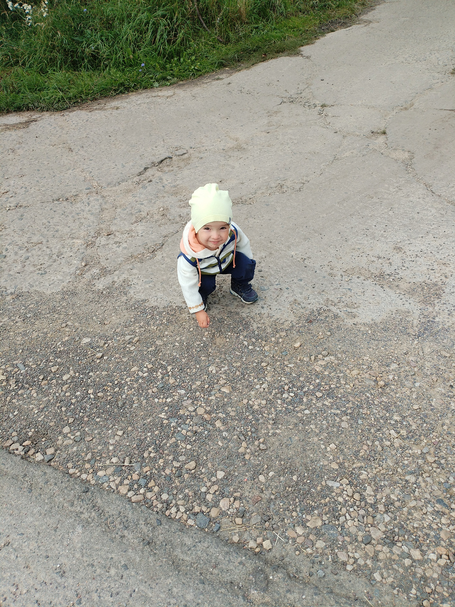 Дедуля мусор отвез, банда наша решила, что негоже с пустой тачкой домой возвращаться. Собирали щебень на дороге и деду в тачку грузили. В хозяйстве все сгодится. Домовитые растут помощники, радоваться деду и радоваться. А он все недоволен, то камни грязные, то руки не отмоешь, то швыряют камни в деда вместо тачки. Ну не угодишь ему!