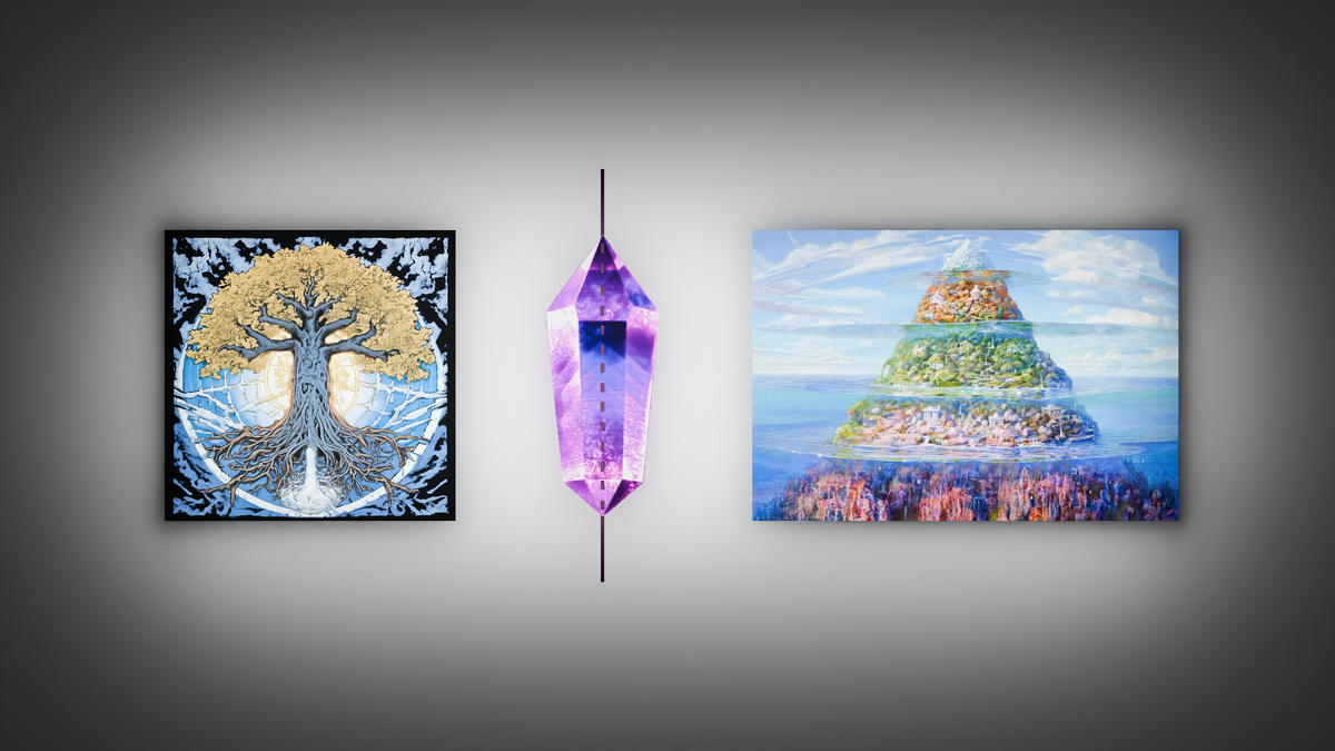 - Символическая универсальность: Гора, дерево и кристалл обладают мощным символическим потенциалом, который легко переносится на метафизические концепции. Гора символизирует возвышение и достижение, дерево – жизнь и связь, кристалл – порядок и чистоту. Эти качества являются фундаментальными для понимания структуры Вселенной и места человека в ней.