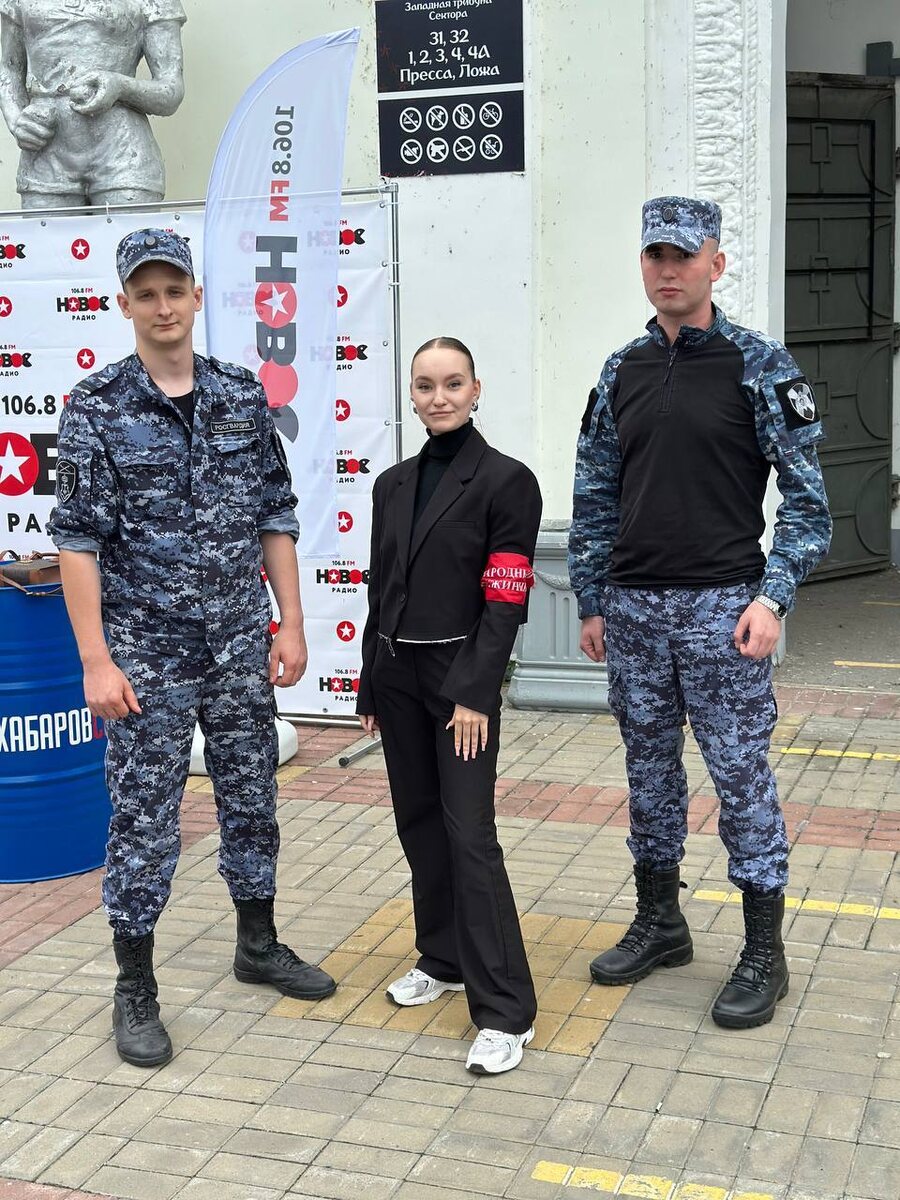 24 августа членами народной дружины «Славянский Лев» @slavlev Кировского района оказано содействие сотрудникам подразделений УМВД России по городу Хабаровску в охране общественного порядка на территории стадиона имени В.И. Ленина во время проведения футбольного матча между командами футбольных клубов
