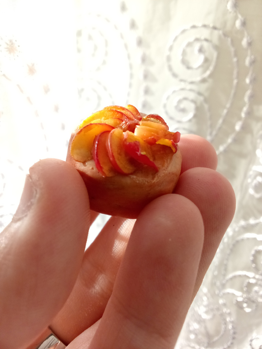 Кому не хочется слепить из полимерной глины миниатюрную шарлотку для своих фигурок? Тесто-это легко, а вот яблоки...не каждый может. Самый главный элемент в миниатюрной шарлотке очень сложно лепиться и только истинный мастер полимерной глины может добиться такого же результата, как на моём фото. Да - скажите вы - миниатюрных яблок не бывает - трагическим тоном - они не продаются в магазине, нет объявлений на Валберис и никто не продаст их на Авито. Я не спорю, но кто сказал, что их нет вовсе? К примеру я, нашла натуральные Ранетки в 6 миллиметров высотой и меньше в ближайшем парке. Прогуливалась мимо кустиков с переливающимися ягодками на солнце и осознала, что это натуральные мини яблоки. Обращайте внимания на простые вещи которые вас окружают в природе и вы найдёте всё, что вам нужно. Ломтики молодых Ранеток были настолько нежными и хрупкими, что я боялась раздавить их в своих пальцах. Теперь вам остаётся нарезать их и выбрать, что будете лепить. Шарлотку из фольги или открытый п
