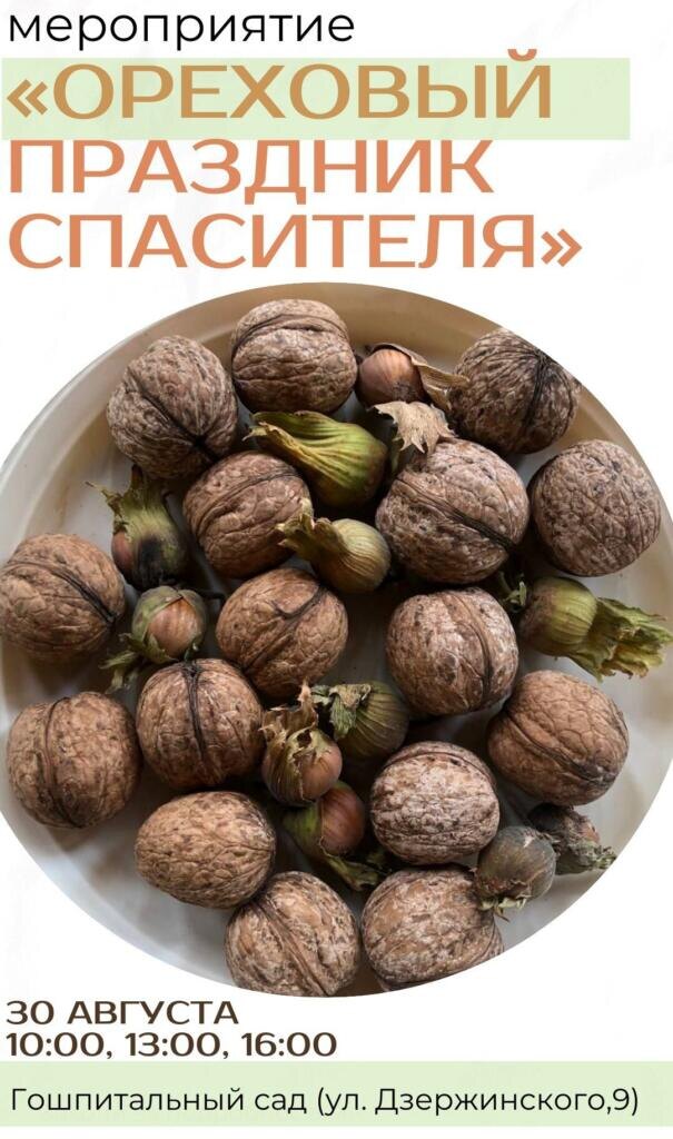 Музей-заповедник приглашает азовчан и гостей города на яркий летний праздник – «Ореховый праздник Спасителя». Мероприятие пройдет 30 августа, в субботу, на уютной территории музейного объекта «Гошпитальный сад» (ул. Дзержинского, 9). Праздник будет посвящен третьему, Ореховому Спасу, который завершает цикл летних православных праздников и Успенский пост. В этот день гости смогут полностью погрузиться в атмосферу традиций. В программе мероприятия: