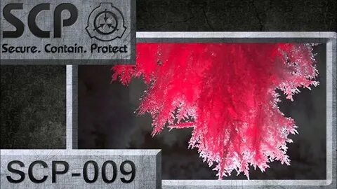 Описание: SCP-009 представляет собой примерно ███ литров жидкости внешне похожей на дистиллированную воду (H2O), но ярко-красного цвета. Красный цвет хорошо виден во всех агрегатных состояниях, что служит самым эффективным методом идентификации зараженного вещества до проявления его аномальных свойств. В отличие от обычной воды, SCP-009 становится жидким при температуре от -100°C до 0°C, и переходит в твердое состояние при температуре выше 0°C. При температуре ниже −100°C объект переходит в газообразное состояние, схожее с паром.
