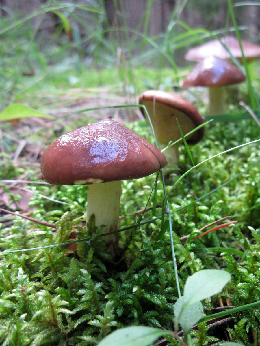 Маслята в молодом сосновом лесу