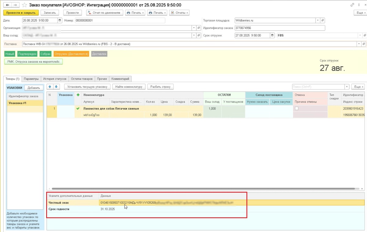 Коллеги/клиенты всем добрый день! =) Все больше категорий товаров попадают под Честный знак... С 1 сентября 2025 года будут включены детские игрушки! Самая ценная валюта это время! Мы стараемся автоматизировать ваш бизнес-процесс и сэкономить каждую секунду! По многочисленным запросам...доработали модуль, а именно: 1. Реализовали передачу КИЗ - Честный знак - они же коды маркировки (с использованием сканера штрихкодов) для модели FBS 2. Реализовали передачу срока годности в заказе по модели FBS Мы учитываем все ваши пожелания/потребности и готовы к совместному развитию На все типовые действия имеются фото и видео инструкции, которые позволят самостоятельно настроить модули для 1С. https://avoshop.ru/docs/