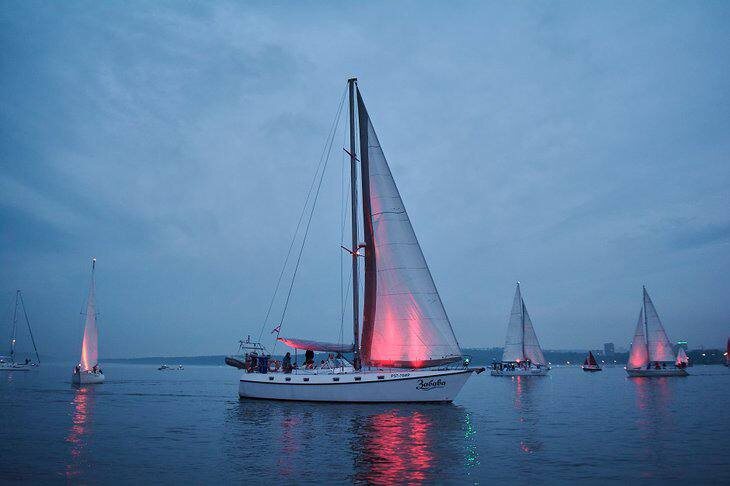 Организаторы утверждают, что в прошлом году фестиваль собрал около 10 тысяч зрителей, а в параде приняли участие более 40 яхт. Каждое судно представляло разные элементы в общей композиции на воде.