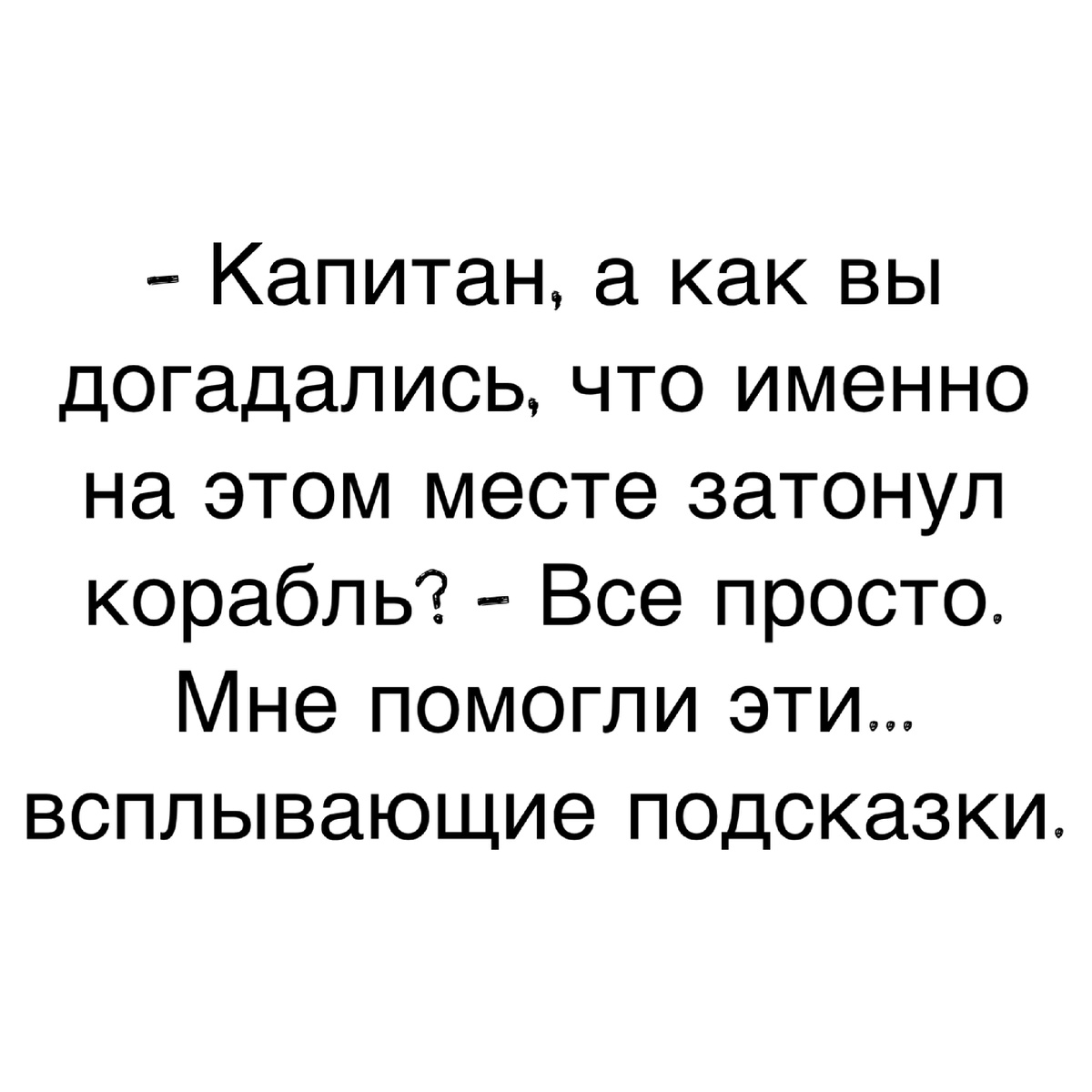 — Капитан, а как вы догадались, что именно на этом месте затонул корабль? — Все просто. Мне помогли эти… всплывающие подсказки.