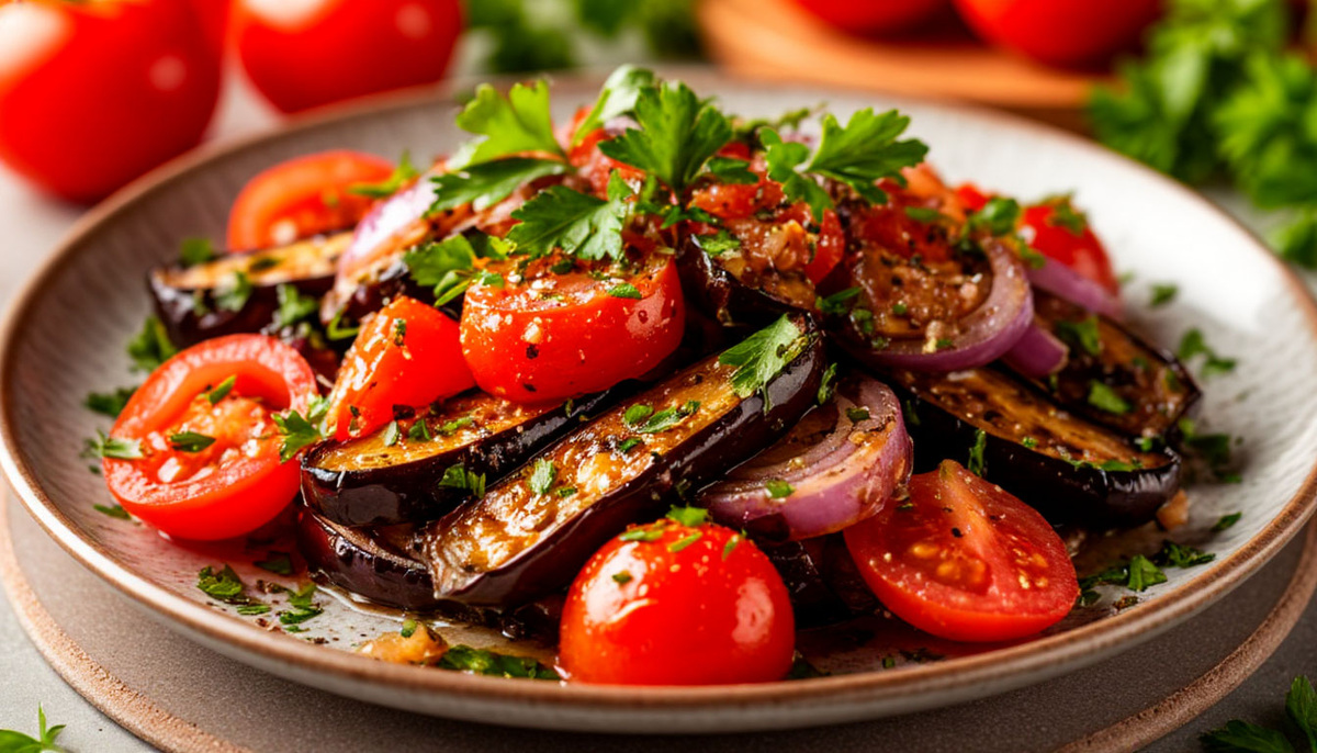 Если хочется приготовить лёгкое, ароматное и полезное блюдо, этот салат из баклажанов — отличный выбор! Запечённые баклажаны с сочными овощами и пикантным соусом создают прекрасное сочетание, которое понравится всей семье. Делюсь классическим пошаговым рецептом. Этот салат из баклажанов получается сочным, ароматным и очень вкусным! Он станет отличной закуской или гарниром для летнего обеда или ужина. Рекомендую всем попробовать — это простое, но очень полезное блюдо! 🥗 📺 Видео с рецептом салата из баклажанов можно посмотреть по ссылке — готовьте и наслаждайтесь вкусом! 🧐 А каким своим салатом из баклажанов вы гордитесь? Делитесь рецептами и советами в комментариях!