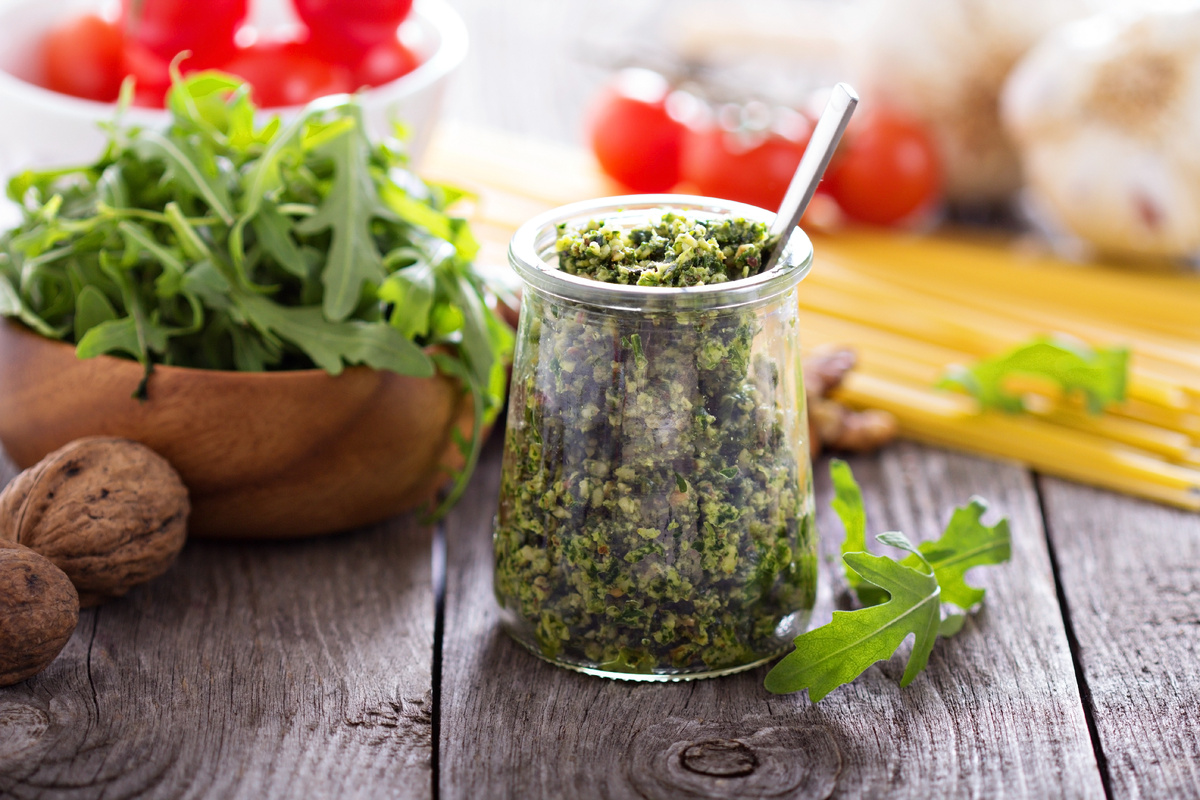 Идеален для: Пасты, ризотто, брускетт, маринования курицы или просто как заправка для салата из помидоров и моцареллы. Рецепт: В блендере измельчите пучок свежего базилика, горсть кедровых орешков (или грецких), зубчик ч