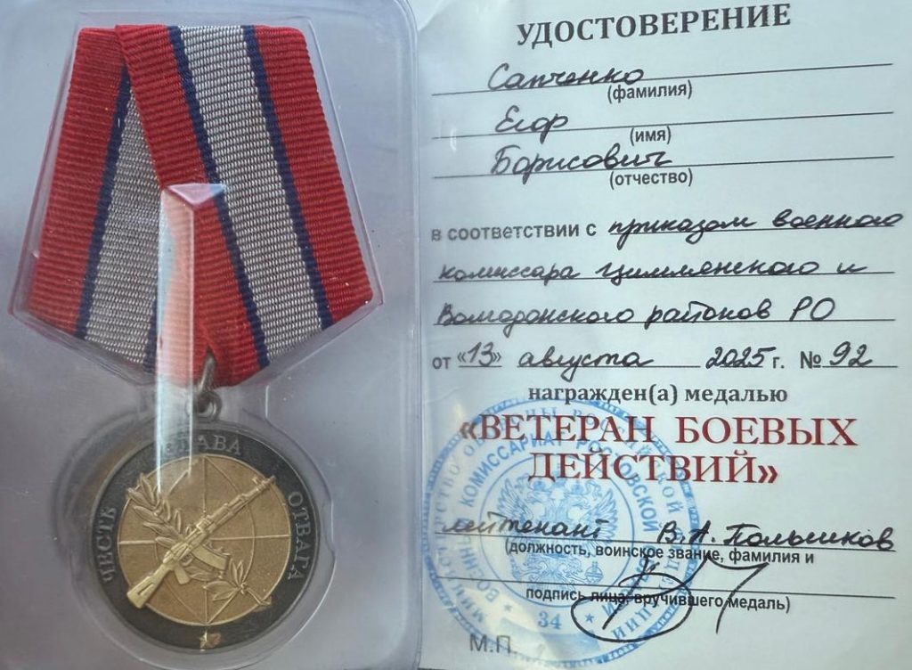 Цимлянин Егор Сапченко был мобилизован на специальную военную операцию осенью 2022 года. Служил в мотострелковом батальоне. Позывной «Сапа». На сегодняшний день Егор списан по состоянию здоровья. В День мотострелковых войск на центральной площади Победы Цимлянска ему вручили медаль «Ветеран боевых действий». Родился Егор в Душанбе. В начале 90-х его семья переехала в Цимлянск. Парень окончил волгодонское училище №70. Срочную службу наш земляк проходил во внутренних войсках города Астрахани. Трудился и продолжает работать и сейчас электромехаником в сети АЗС «Газпром», ремонтирует и обслуживает топливно-заправочные колонки. В 2013 году герой нашего повествования женился на девушке Анастасии. В их семье родилась дочь Мария, которой уже пять лет. Она воспитанница детского сада «Радость» и танцевального коллектива эстрадного танца «Калейдоскоп». Когда Егора мобилизовали, малышке было всего два года… Героями не рождаются, героями становятся. Мог ли подумать молодой мужчина, у которого стаб