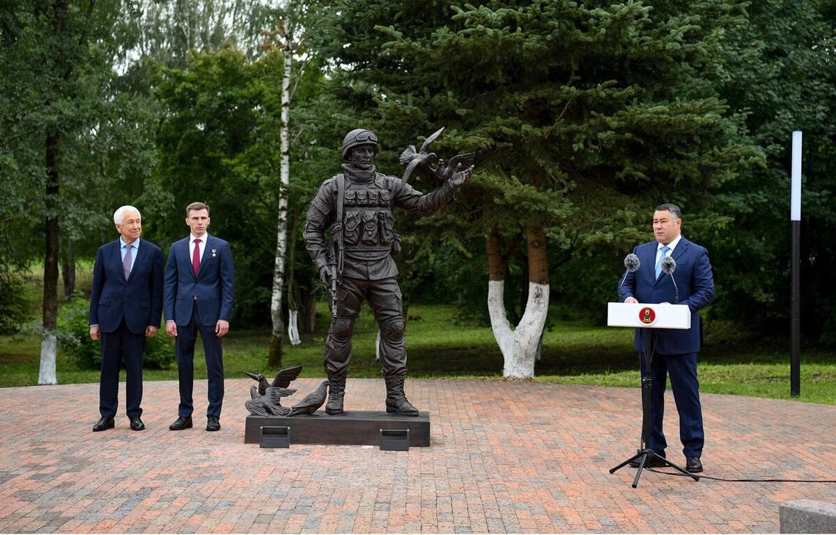 В городе воинской славы Ржеве Губернатор Игорь Руденя, депутат Госдумы РФ Владимир Васильев и Герой России Владислав Головин открыли памятник участникам СВО На церемонии присутствовали председатель Заксобрания Тверской области Сергей Голубев, родные бойцов, ветераны, жители Ржева. Монумент установлен на улице Партизанская. «В год 80-летия Великой Победы, Год защитника Отечества мы открываем памятник наследникам поколения победителей – участникам специальной военной операции. Наши современные герои, как деды и прадеды, напомнили всему миру о непобедимой силе России. Это свидетельство по-настоящему всенародной поддержки наших бойцов, уважения и благодарности всем, кто на передовой отстаивает суверенное и безопасное будущее страны. Сегодня мы демонстрируем всему миру единство и силу нашего народа!» – подчеркнул Игорь Руденя. «Спасибо всем, кто защищал нашу страну и нашу свободу, – тем, кто сделал очень многое для восстановления исторической справедливости», – сказал Владимир Васильев.