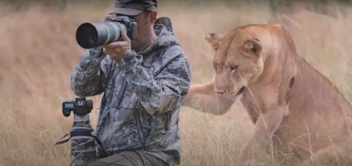 Больной лев, львица рядом с ним, и Майкл, стоящий в нескольких метрах от хищников без всякой защиты.