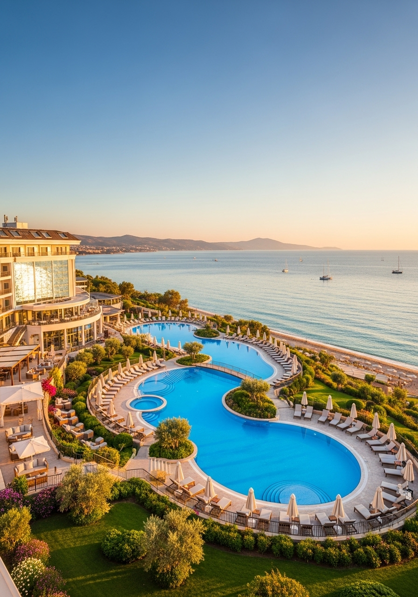 Элитный пятизвездочный курорт ультра все включено, сочетающий роскошь и комфорт с великолепным расположением на берегу Эгейского моря. Отель предлагает изысканную архитектуру, высококлассный сервис и разнообразные возможности для отдыха и развлечений.