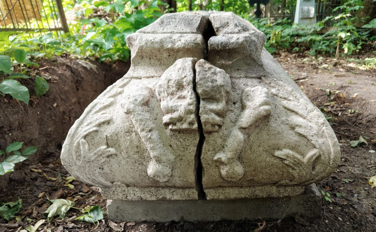 Находка обнаружена на Всехсвятском кладбище. Еще в начале сезона 2025 года участники субботника на старейшем тульском некрополе обнаружили торчащий из земли фрагмент белого камня. Сначала было предположение, что это надгробие, но когда извлекли на поверхность, то оказалось, что это богато украшенный резьбой саркофаг XVIII века, выполненный в стиле барокко. Об этом сообщает пресс-служба Тульского историко-архитектурного музея. Текст на нём, нанесенный крупным, характерным для восемнадцатого столетия шрифтом, гласит: «…ИВАНА ТЕРЕНТЬЕВИЧА ПАСТУХОВА [ЖИТИЯ]ЕВО БЫЛО 65 ЛЕТЪ. ПРЕСТАВИСЯ // АПРЕЛЯ 12 ЧИСЛА ВО ВТОРОМ [ЧАСУ] ПОПОЛУДНИ 1777 ГОДА…» Углы саркофага украшены рельефными изображениями акантовых листьев, на верхней плоскости крышки изображена «Голгофа со страстями» (крест на горе, копие и трость). Очевидно, что был покрыт резьбой и западный торец, который, к сожалению, разрушен. Зато эффектный рельеф восточного торца, изображающий Адамову голову, предстает во всей эффектной красоте. На