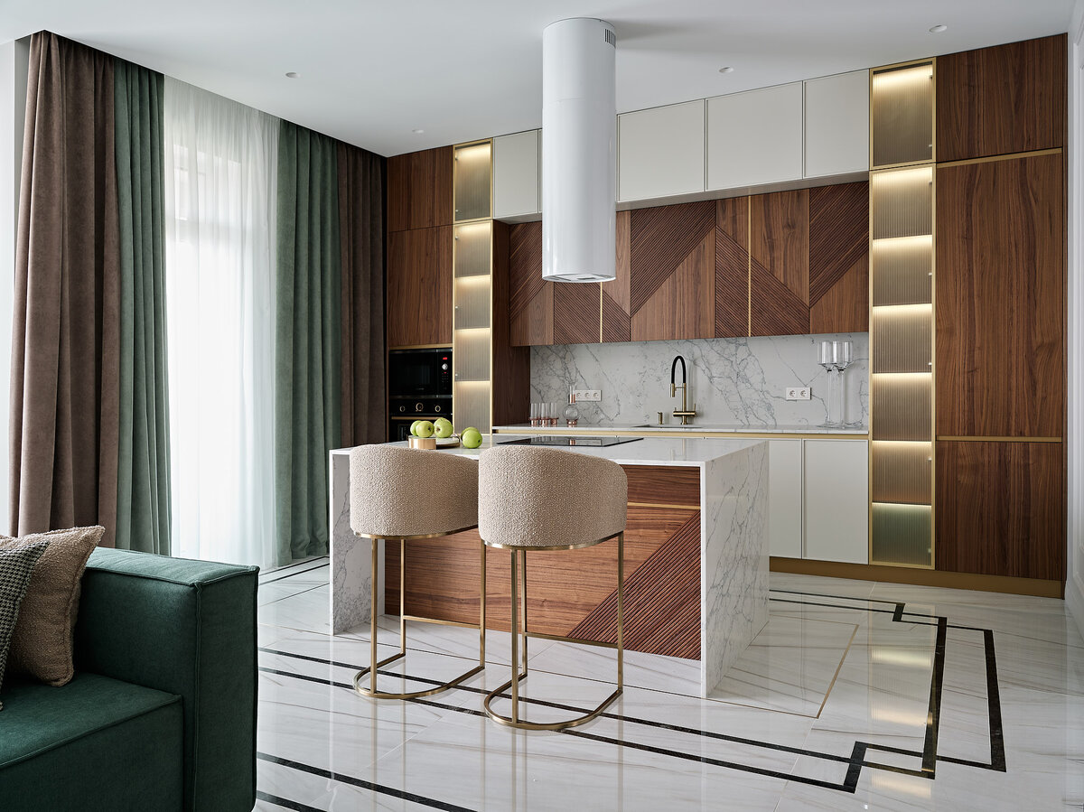 Кухня — это уже не только место приготовления пищи. Это центр общения, где собираются семья и друзья. В премиальных проектах именно этому уделяют большое внимание.