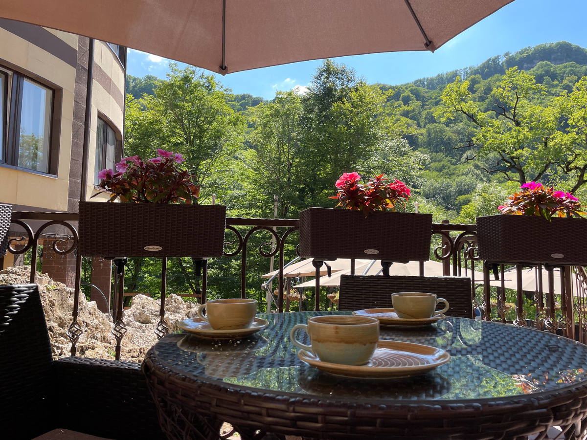- Вкусный завтрак — например, ароматный кофе или чай с видом на природу.