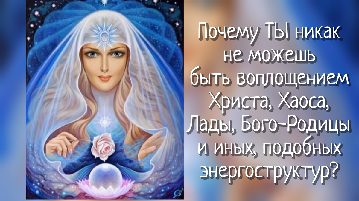 Почему ТЫ никак не можешь быть воплощением Христа, Хаоса, Лады, Богородицы и иных подобных энергоструктур? __________ ОТРЕЗВЛЯЮЩИЙ ВОПРОС НА МИЛЬЁН Если ты полагаешь, что являешься именно воплощением таких энергоструктур, то спроси себя: ЧТО ТЫ ИМИ ДЕЛАЕШЬ? Как ты живёшь свою жизнь? Как эту Силу проявляешь тут, на Земле, здесь и сейчас? Скажу честно: из многолетней практики взаимодействия с разными людьми могу сказать, что я ещё никого не видела со способностями именно такого масштаба. Да, несомненно, есть сильные люди, которые являют интересные события и обладают незаурядными мыслями, но это не что-то сверх, как каждый из нас ожидал бы... Да, это может поддержать в нас веру во что-то большее, НО... Сейчас обычно все только много думают о себе, а по факту — всё не более чем. Всё те же проблемы в душах, в семьях, в здоровье и так далее. Кто-то может назвать себя суперпроводником тайных знаний и вести свой блог, делать видео, собирать публику — его энергоструктура позволяет вести л