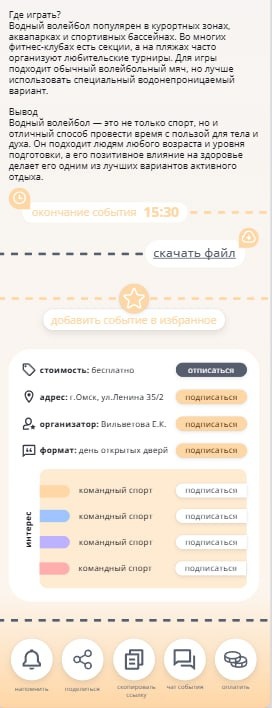 Новостной дайджест 15.08.2025 - 25.08.2025 Следующая неделя обещает быть богатой на новинки) Разработка: 1. Выделили причины по которым ИИ пропускает некоторые типы постов. Работаем над их внедрением. 2. Доработали визуал по спискам событий. 3. Подготовили к внедрению ускоренную загрузку событий. 4. Спроектировали создание слоев. Каждый сможет наносить на карту свой слой со своими метками. Количество омичей установивших приложение: 10 140 (+1 013 за неделю) Планы: 1. Доработать функционал создания частного события (дни рождения и т.д.) 2. Разработать новый визуал для карты. 3. Начать распространять приложение системно. 4. Слой "Бесплатный вайфай" перенесем на отдельную кнопку, чтобы они не отображались вместе с событиями. Продолжаем сотрудничество с Минцифрой. Так же удалось наладить контакт с Минкультом и Туристическим информационным центром. На фото часть карточки в режиме "Подробнее"