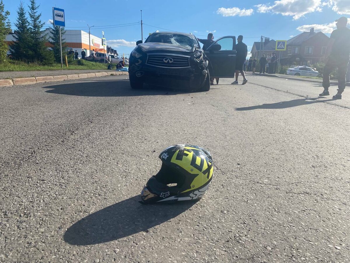 Происшествие случилось сегодня, 26 августа, в Демском районе столицы, сообщает главный госавтоинспектор республики Владимир Севастьянов. В четвертом часу дня на пересечении улицы Башкирской Кавдивизии и бульвара Героев Труда мальчик за рулем питбайка столкнулся с «Инфинити» под управлением 29-летней женщины. Несовершеннолетний скончался от полученных травм. Полиция устанавливает обстоятельства ДТП. Фотография предоставлена пресс-службой столичной госавтоинспекции.