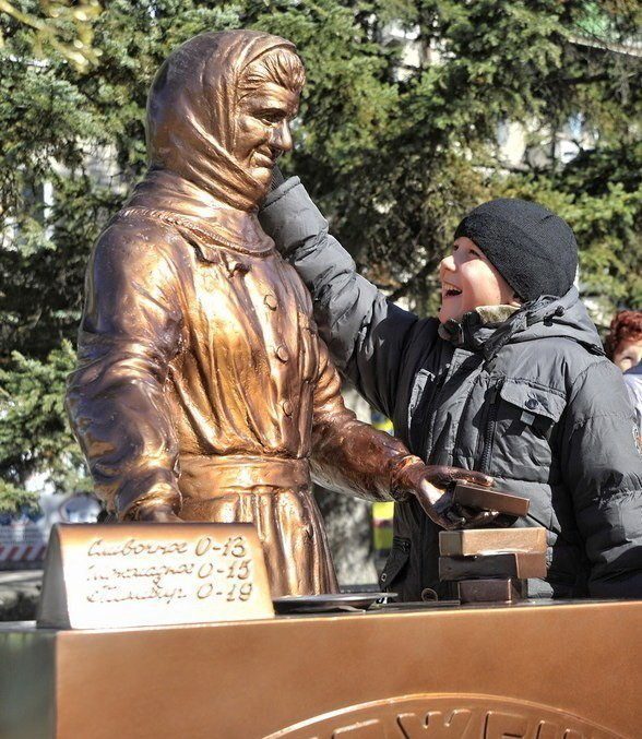 В Благовещенске стоит памятник Зинаиде Дмитриевне Синицыной. Жители города, не знавшие ее имени, называли продавщицу мороженого просто Снегурочкой – ни знойным летом, ни зимой в сорокаградусные морозы она не покидала своего лотка. А меж тем история Снегурочки совсем не сказочная: в годы войны вместе с мужем она сражалась в партизанском отряде, была награждена медалью «За боевые заслуги». Каратели, добиваясь от нее показаний, замучили и убили ее трехлетнего сына. Потеряв и мужа, Зинаида уехала на Дальний Восток. Бабушка Зина верила в Бога и тихо делала добрые дела: отправляла подарки и заработанные деньги в детские дома. После смерти оставила государству сберкнижки на несколько тысяч рублей. Нотариус, оформлявшие наследство, удивлялся – хватило бы на роскошную квартиру, а Синицына ютилась в коммуналке. Благодаря пожертвованиям горожан спустя полвека после смерти Снегурочка вернулась на свое привычное место…