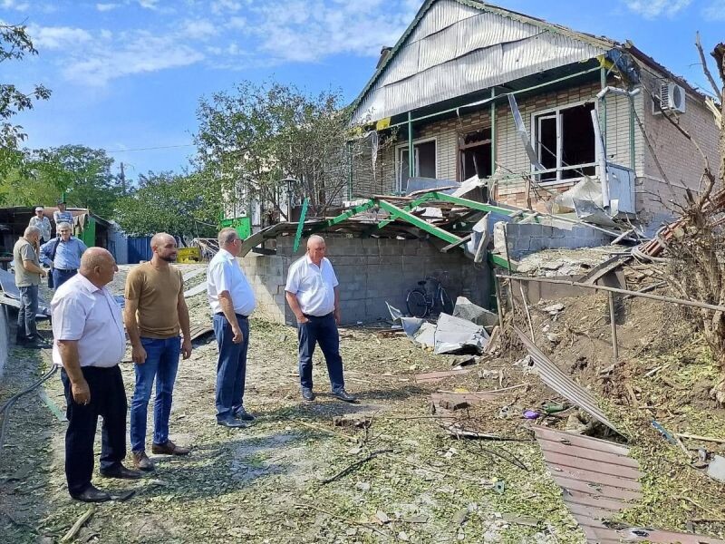 После атаки БПЛА в Новобессергеневке в границах зоны ЧС расположены 11 домов. В основном разбиты стекла, двери, повреждены стены и крыша. В одном из пострадавших домов частично разрушены стена и крыша, повреждена машина.