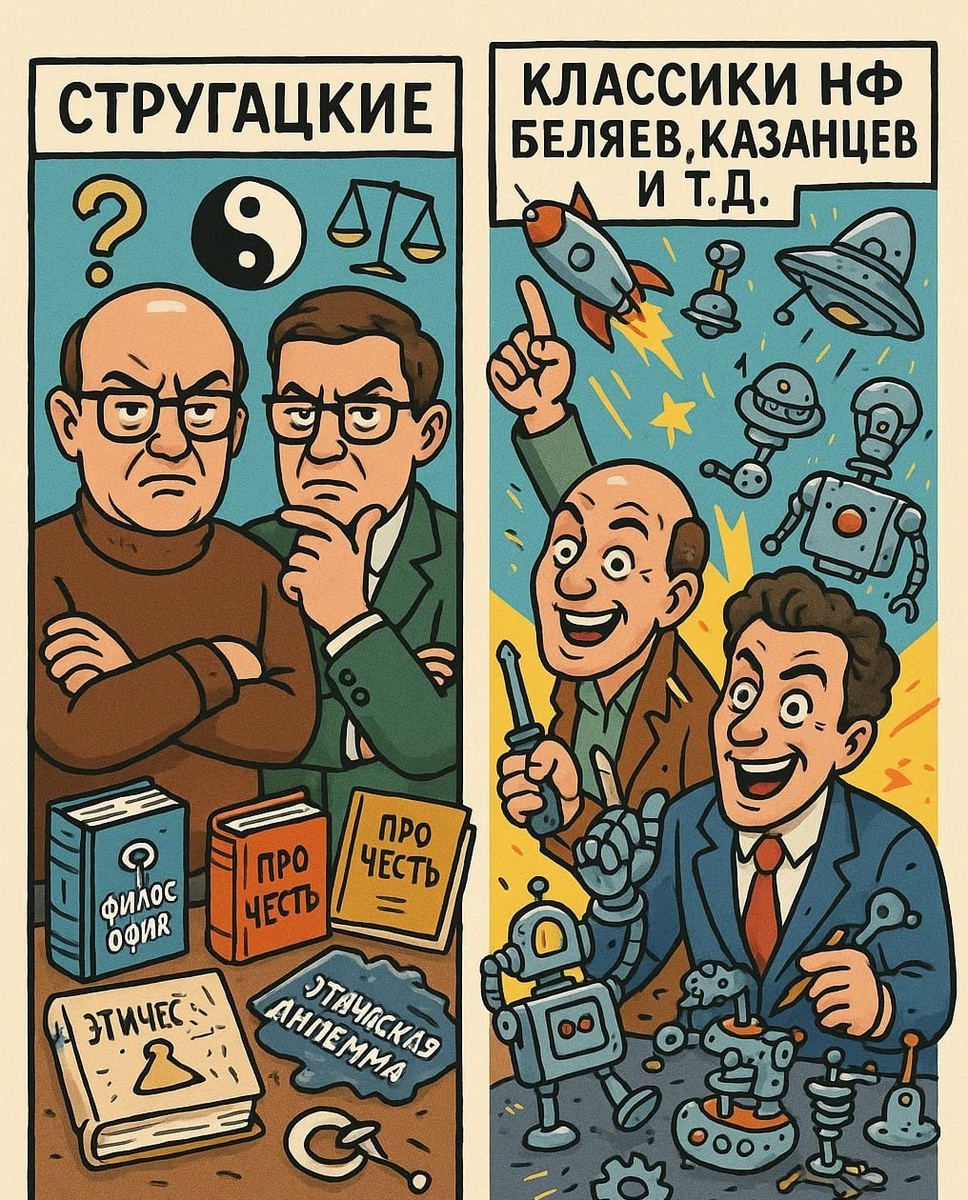 Вклад Стругацких сильно переоценен. Они стали брендом и культурным символом эпохи, но настоящие гении советской фантастики — это Беляев, Казанцев и другие, кто создавал миры с логикой, научной основой, социальными и технологическими экспериментами. Их фантастика реально развивает ум, а не только душу.