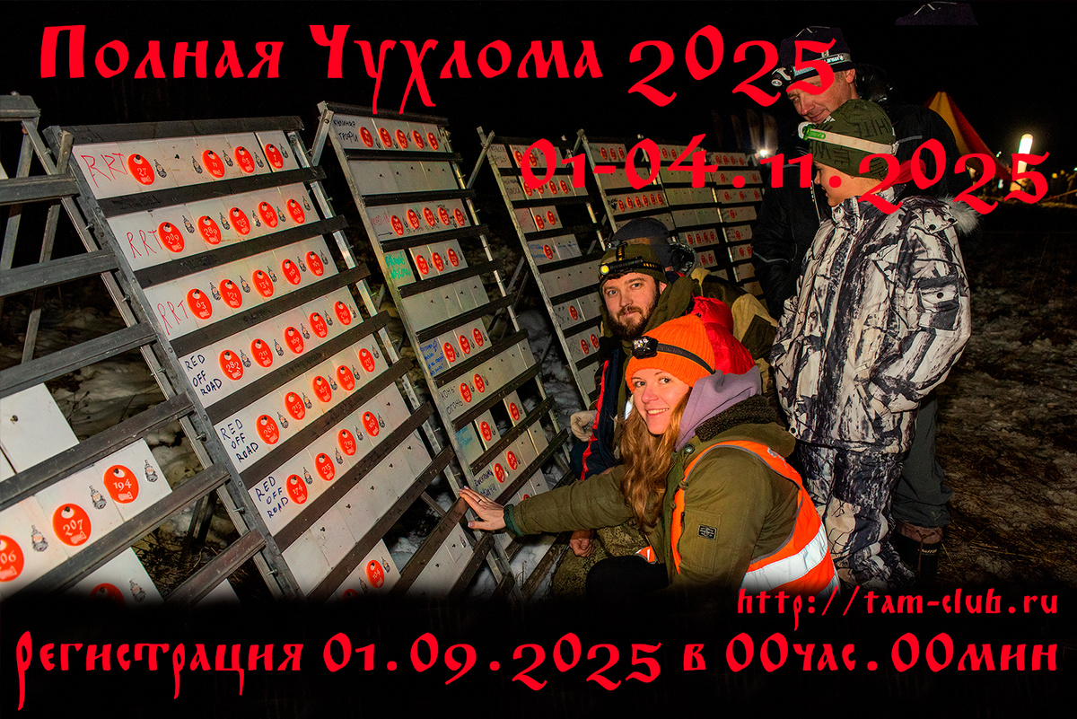 Вот краткое содержание о «Полной Чухломе – 2025»: 📍 Где: Чухломские и костромские леса (Костромская область, Центральная Россия). 📅 Когда: 1–4 ноября 2025 года (5 дней с дорогой). 🏕 Как: • Лагерь №1 открывается 1 ноября с 17:00. • Регистрация участников — 1 ноября (17:00–24:00) и 2 ноября (08:00–13:00) в лагере №1. • Финиш — 4 ноября в 21:00 в Лагере №2. 🚙 Формат: • Это не гонка, а экспедиционное внедорожное приключение. • Две категории участников: • Геоджиперы — стандартные внедорожники (грунтовки, грейдеры, лёгкое бездорожье). • Эгегейцы — подготовленные машины (лебёдка, шноркель, грязевая резина, жёсткое бездорожье). 📖 Что ждёт участников: • Маршрут по древним дорогам и заброшенным храмам. • Полная автономность экипажей (еда, вода, одежда минимум на 4 дня). • Вечерние костры, «видеозал под открытым небом», общение с единомышленниками. • Дорожная книга и карты выдаются утром каждого дня. 📝 Как попасть: • Участие только по предварительной регистрации (онлайн, на форуме/через ор