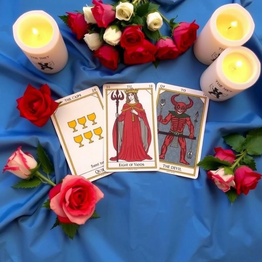 Значение: Дьявол символизирует искушение, привязанность, страсть и иногда нездоровую одержимость. В контексте сокровенных желаний это указывает на то, что его чувства к Вам имеют сильный, почти магнетический характер, и он может быть глубоко привязан к Вам на эмоциональном или физическом уровне.