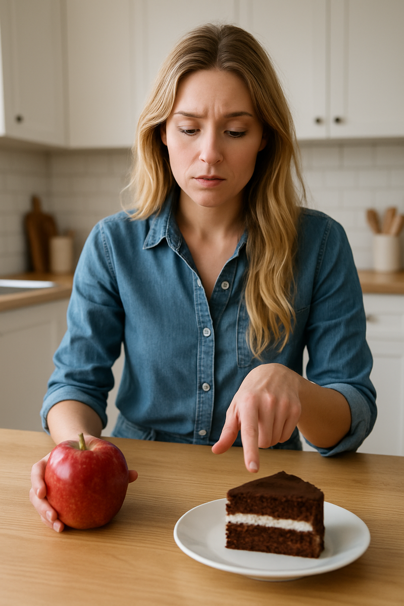 Очень часто я слышу от клиентов одну и ту же фразу: «Хочу сладкое. Съем яблоко вместо торта — и всё будет хорошо». Звучит логично. Но действительно ли это работает? Давайте разберём мифы и разложим всё по полочкам. Правда: фрукты полезнее, чем торт, но не всегда решают проблему. Да, яблоко даёт витамины, клетчатку и меньше калорий. Но мозг ждёт «награду» — крем, хруст, насыщенный вкус. Одно яблоко может оставить ощущение неудовлетворённости, и тогда рука всё равно потянется за печеньем. Правда: калории есть везде. В среднем яблоко содержит 80–100 ккал. Если съесть три подряд, это уже почти кусочек торта. Важно не забывать про меру: перекус - это один фрукт, а не «безлимит». Правда: яблоко сглаживает всплеск сахара, но не решает психологическую привычку. Здесь работает комбинация: Такой перекус даёт и сладость, и сытость, и мозг получает «сигнал удовольствия». Правда: жёсткие запреты только усиливают желание. Если полностью убрать десерты, мозг будет «мстить»: появятся срывы и переедани