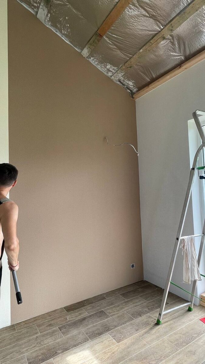 Сегодня было сложно. Высота 5 метров 😅. Спасибо моей помощнице мы справились! Вышло круто. Спасибо нашим клиентам за доверие и выбор качественных обоев. Здорово когда прислушиваются к мнению мастера