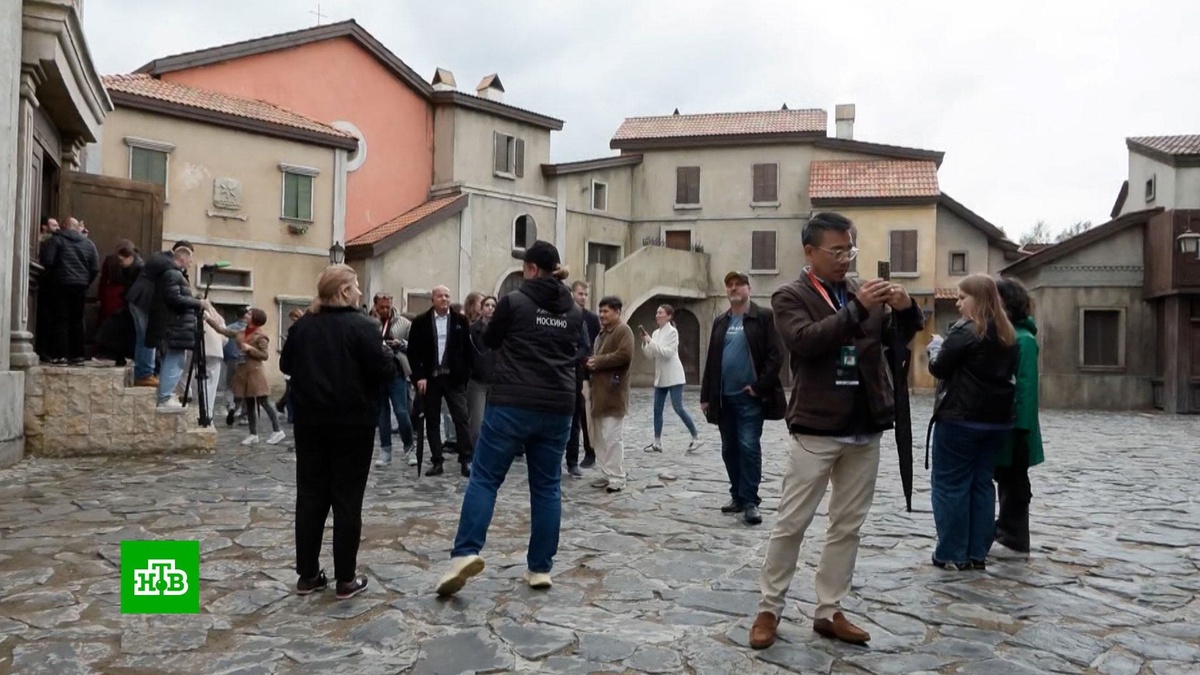 [ Смотреть видео на сайте НТВ ] «Москино» подписало ряд международных соглашений о сотрудничестве. Церемония состоялась в рамках Московской недели кино. Документы предполагают совместную работу, в том числе съемку фильмов, с компаниями из Египта, Турции, Бразилии и Мексики. Всего в этом году на Неделю кино приехали представители более чем 20 стран. Для иностранцев организовали экскурсию по площадкам кинопарка. Уменьшенная копия Театра Гонзаго — первая киносъемочная локация «Москино». Именно здесь и встречают гостей из Китая, Индии и арабских стран. Главный художник кинопарка презентует площадку, в первую очередь подчеркивая экономическую выгоду — арендовать действующий театр даже на один день слишком дорого. Кинопарк во всех аспектах привлекателен для съемок. Сергей Февралёв, главный художник кинопарка «Москино»: «Дело в том, что у нас уникальный климат. В Индии или арабских странах зимы нет, и, конечно, наши декорации, укрытые снегом, — это уже полдела». Но лучше один раз увидеть, чем