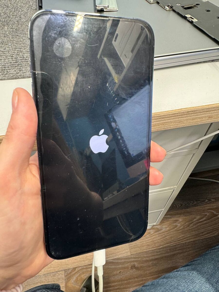 iPhone 14 Pro Max Выездной мастер заменил аккумулятор на выезде. Сказал телефон не включать ближайшие 2 часа😁и убежал 🏃 (аккумулятор сохнет 😆), заменил якобы на оригинал.. Итог: АКБ плохая копия Дисплей склеен на черный клей iPhone висит на яблоке Нужны данные.. Вывод: 1)Всегда дублируем важные данные 2)Не нужно вызывать выездных «мастеров»