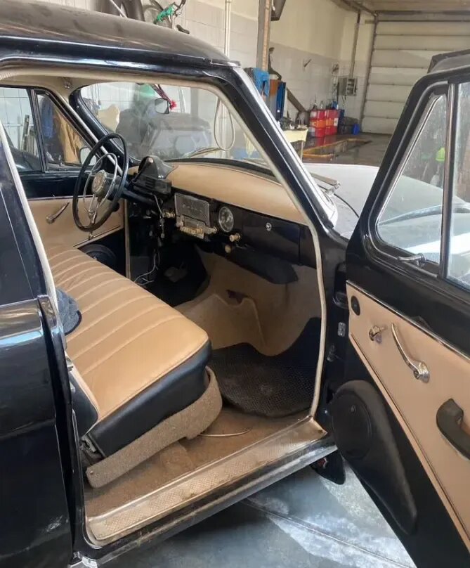 Судя по фотографиям, автомобиль сохранился в полностью заводской комплектации. Кузов окрашен в классический черный цвет, а интерьер выполнен в светло-бежевых тонах.