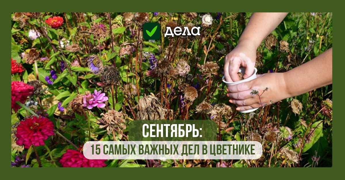Сентябрь: 15 самых важных дел в цветнике 🌺 В сентябре дозревают семена у некоторых однолетних, двулетних и многолетних цветов. 🌺 Астры однолетние, бархатцы, космеи, циннии и другие цветы с удовольствием делятся своими семенами, поэтому при желании можете их собрать. Делайте это в сухую погоду. Обязательно дополнительно просушите семена перед хранением, чтобы в дальнейшем избежать порчи, и рассортируйте. 🌺 Храните в сухом, прохладном месте в бумажных упаковках, каждую из которых подпишите, указав сорт культуры и дату сбора семян. Весной вам не придется тратиться на покупку семян, к тому же, избыток посевного материала сможете использовать как обменный фонд – соседи будут этому только рады. Что еще нужно успеть сделать в сентябре в цветнике, рассказали в статье: https://www.dela.media/stati/sentyabr-15-samyh-vazhnyh-del-v-tsvetnike?utm_source=telegram