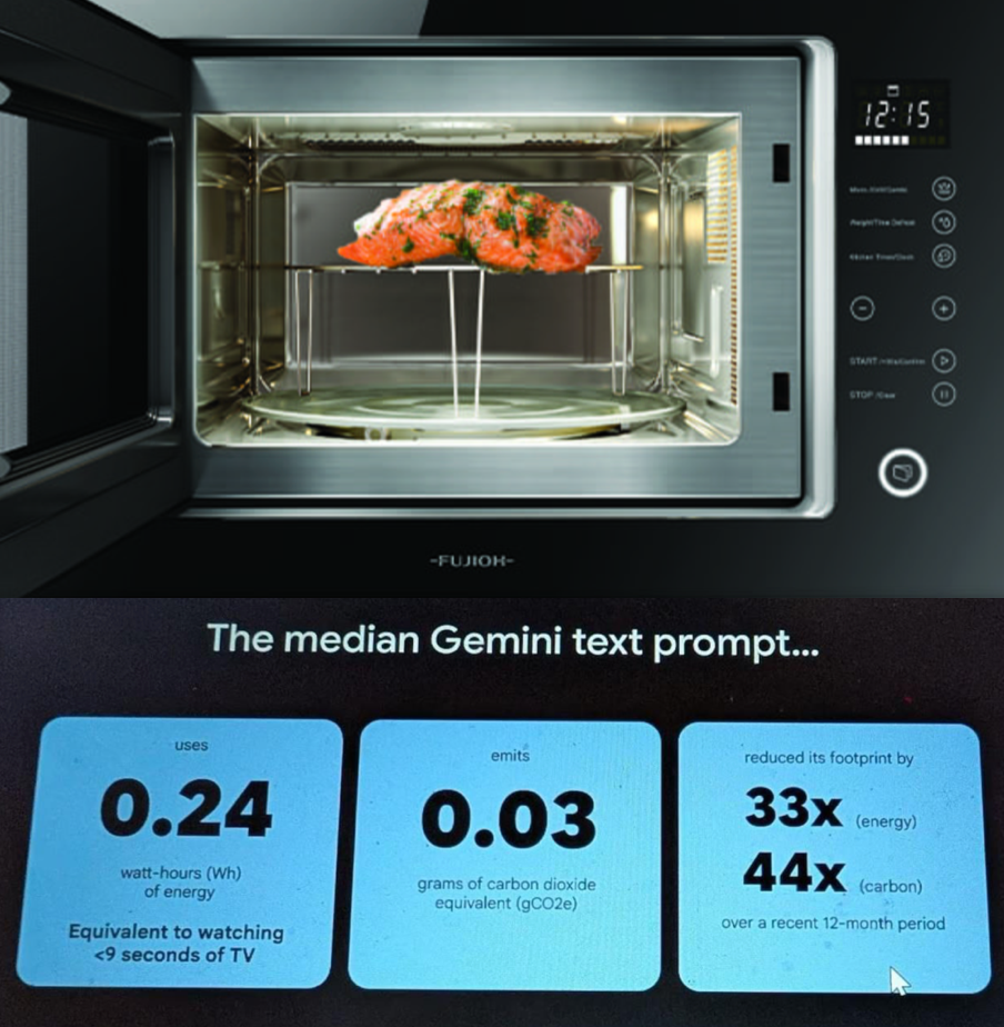 Оказывается, каждый раз, когда вы спрашиваете у Gemini что-то эдакое, где-то в дата-центре Google микроволновка радуется: один запрос потребляет примерно столько же энергии, сколько секунда разогрева вашего вчерашнего борща — всего 0,24 Вт·ч.