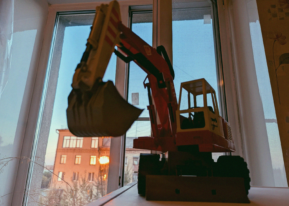 Наконец экскаватор нашёлся в шкафу. Он будто специально спрятался в куче вещей. Мила готова была поклясться, что не помнит, когда положила его туда. Кроме того, новенькая игрушка заметно изменилась внешне. Экскаватор выглядел выцветшим, а в некоторых местах пластик потёк, будто его держали над огнём.