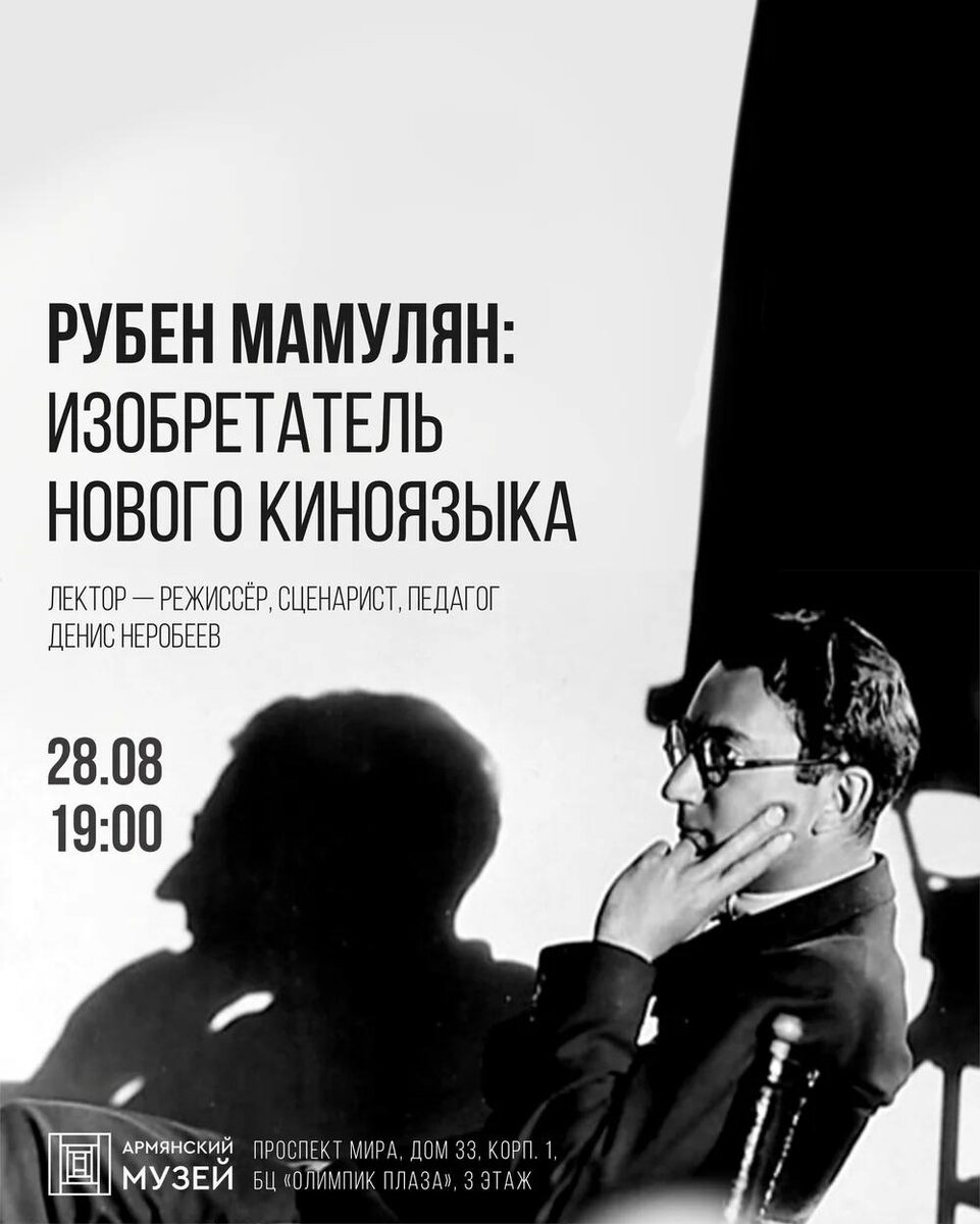 📌 28/08 в 19:00 Рубен Мамулян: ИЗОБРЕТАТЕЛЬ НОВОГО КИНОЯЗЫКА . Лекция Дениса Неробеева из цикла «Режиссёр о режиссёре»