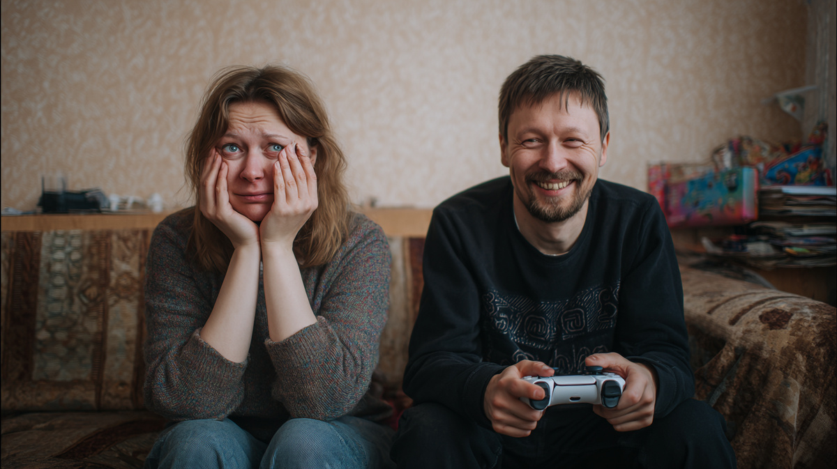 — Иди сама, — ответил муж, не отрываясь от экрана.