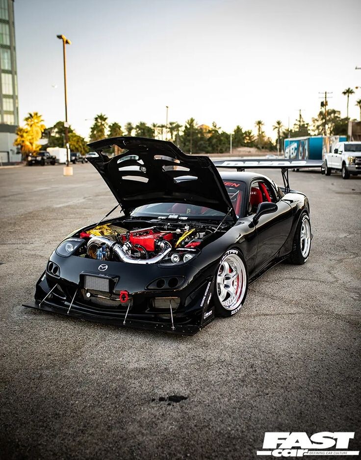 Mazda RX-7 — это не просто спорткар из Японии. Это символ целой эпохи, когда инженеры Mazda шли против правил и делали ставку на роторный двигатель, который почти никто больше в мире не использовал. Немного магии в моторе Вместо привычных поршней в RX-7 работал двигатель Ванкеля. Он был меньше, легче, но крутился так, что маленький мотор мог выдавать мощность, сопоставимую с куда более большими "атмосферниками". Для фанатов это был почти магический механизм: ревел иначе, тянул иначе, ломался чаще — но дарил уникальные ощущения за рулём. --- Характеристики (FD3S — третье поколение, 1992–2002 гг.) Двигатель: 1.3 л роторный (13B-REW), с двумя турбинами Мощность: от 255 до 280 л.с. (в зависимости от версии и рынка) Разгон 0–100 км/ч: примерно 5,3 секунды Макс. скорость: около 250 км/ч Вес: всего 1280 кг (очень лёгкая для спорткара) Привод: задний Коробка: 5- или 6-ступенчатая механика (позже была и автомат, но фанаты считают это кощунством 😅) Красота японских 90-х Именно тр
