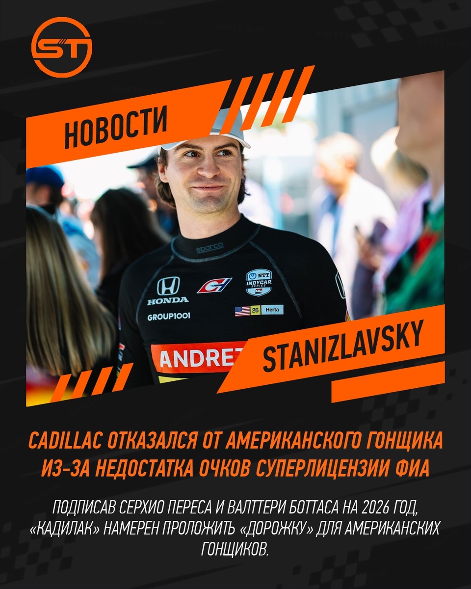 Cadillac оправдались за своё решение не подписывать американского гонщика на дебют в Формуле-1 в 2026 году. Команда General Motors дебютирует в Формуле-1 на старте нового технического регламента, а в её состав войдут бывшие победители гонок Валттери Боттас и Серхио Перес. С момента объявления о вступлении Cadillac в чемпионат не утихали разговоры о возможном участии американского пилота, который мог бы подчеркнуть национальную принадлежность бренда. Однако с течением времени становилось ясно, что команда, действующая в партнёрстве с TWG Global, отдаст предпочтение гонщикам с опытом выступлений в европейской гоночной среде. 🏁 Дэн Торрис, глава TWG, объяснил выбор тем, что Колтон Херта, звезда IndyCar из команды Andretti, не имеет достаточного количества очков суперлицензии ФИА для участия в гонках. Хотя среди кандидатов назывались имена вроде Джозефа Ньюгардена, Cadillac решил сделать ставку на проверенный опыт в первый год выступлений. «В случае с Колтоном недостаточно очков суперли