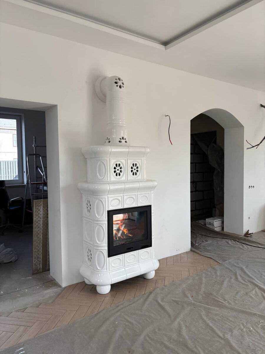 07.08.2025. Ленинградская область.КП Всеволожский. Изразцовые камины Медальон. Монтаж завершили одним днем. Установили топку👌. Собрали облицовку👌. Дымоход подключили к заложенной в стене шахте👌. Сделали затирку👌. Протопили камин, проверили работу и рассказали заказчику о правилах эксплуатации😊☺️👍. Всем добра❤️.